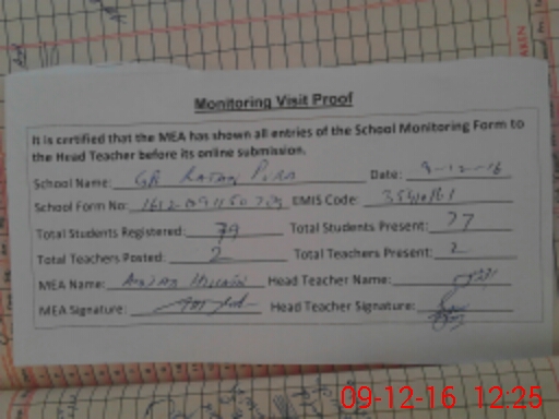 | Attendance Register | Head Teacher | MEA with School | Visit Proof |