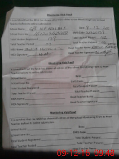 | Monitoring Date: 09-12-2016 | Start Time: 09-12-2016 08:58 AM | End Time: 09-12-2016 09:49 AM | Name of MEA: Kh**** Hu**** | |