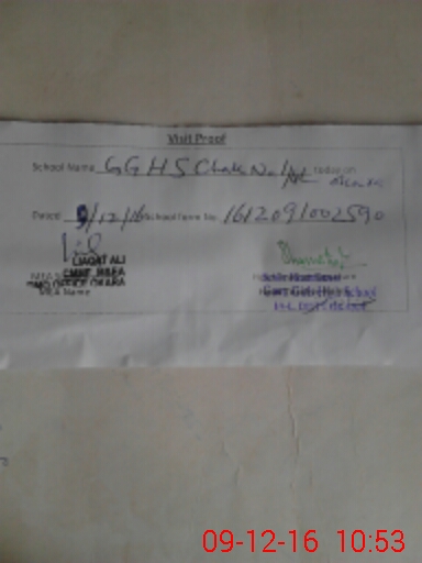 | School Visited by School Health & Nutrition Supervisor (No. of Visits) | 2 | Name1: | Jawed Tahir | Name2: | Jawed Tahir |