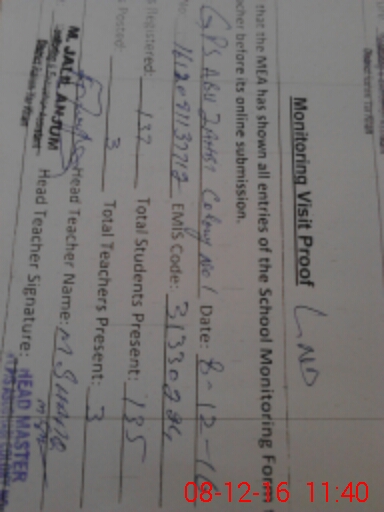 | Attendance Register | Head Teacher | MEA with School | Visit Proof |