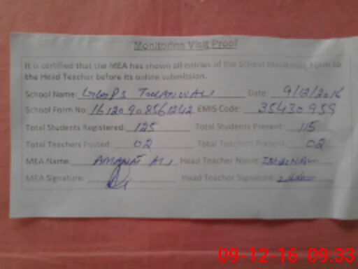 | Attendance Register | Head Teacher | MEA with School | Visit Proof |