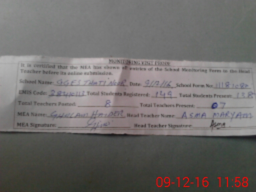 | EMIS Code: 38410113 | Name of School: GGES THATTI NOOR | |||