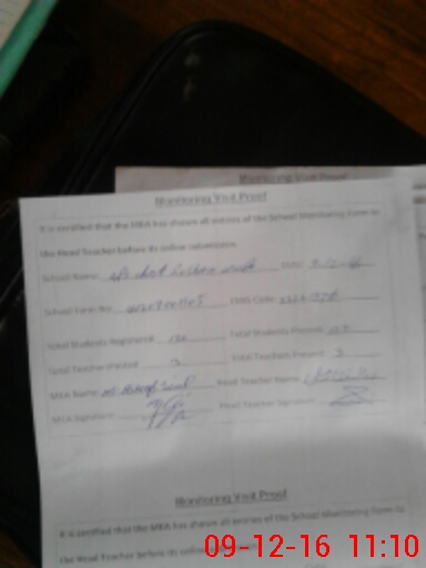 | Attendance Register | Head Teacher | MEA with School | Visit Proof |