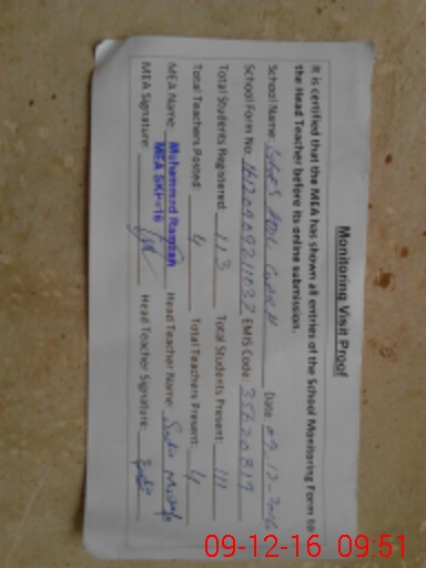 | Certified that this School was Inspected by the Undersigned MEA/DMO Today and the Information Stated Above is as Per Record. | |||||