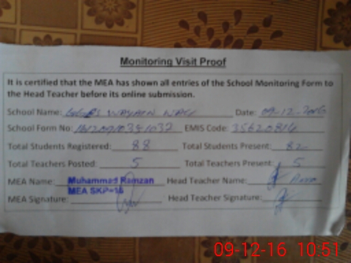 | EMIS Code: 35620814 | Name of School: GGES WAIYAN WALI | |||