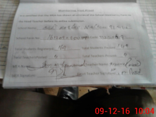 | Attendance Register | Head Teacher | MEA with School | Visit Proof |