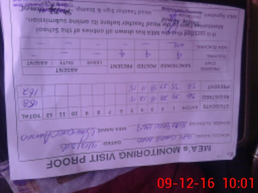 | Attendance Register | Head Teacher | MEA with School | Visit Proof |