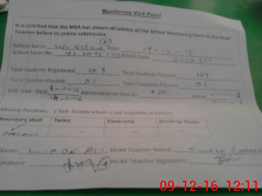 | Certified that this School was Inspected by the Undersigned MEA/DMO Today and the Information Stated Above is as Per Record. | |||||
