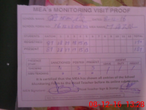 | Certified that this School was Inspected by the Undersigned MEA/DMO Today and the Information Stated Above is as Per Record. | |||||