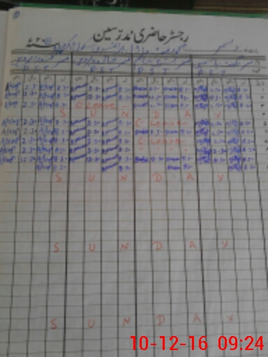 | CNIC | Full Name | Designation | R/C | Absence During Last Calender Month |