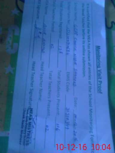 | Attendance Register | Head Teacher | MEA with School | Visit Proof |