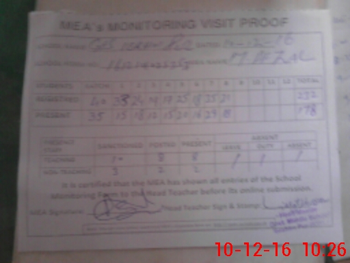 | Attendance Register | Head Teacher | MEA with School | Visit Proof |