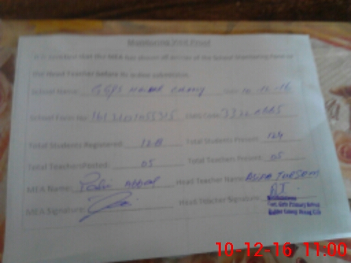 | EMIS Code: 33220665 | Name of School: GGPS HAIDAR COLONY | |||