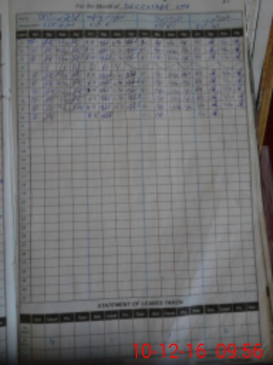 | CNIC | Full Name | Designation | R/C | Absence During Last Calender Month |