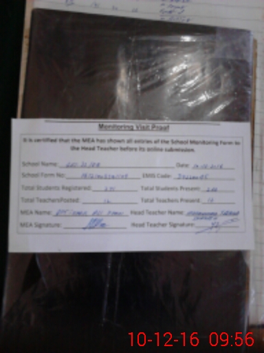| Attendance Register | Head Teacher | MEA with School | Visit Proof |