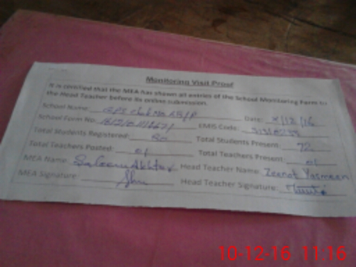 | Certified that this School was Inspected by the Undersigned MEA/DMO Today and the Information Stated Above is as Per Record. | |||||