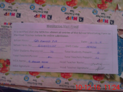 | Certified that this School was Inspected by the Undersigned MEA/DMO Today and the Information Stated Above is as Per Record. | |||||