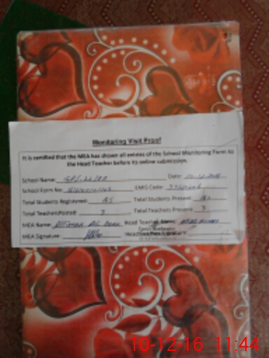 | Attendance Register | Head Teacher | MEA with School | Visit Proof |