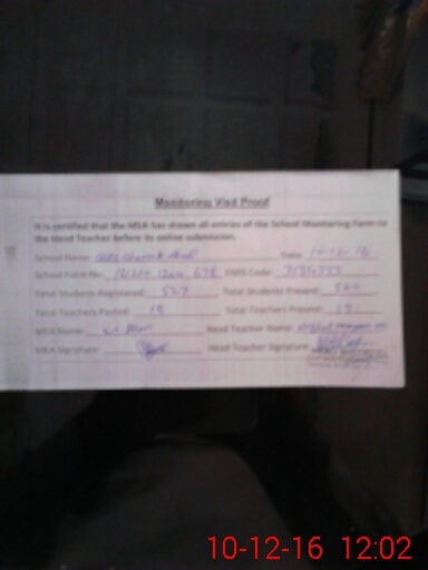 | Certified that this School was Inspected by the Undersigned MEA/DMO Today and the Information Stated Above is as Per Record. | |||||