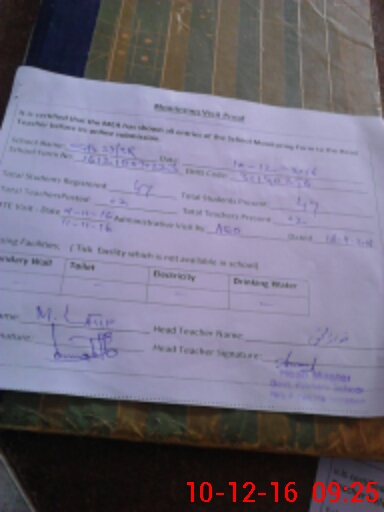 | Certified that this School was Inspected by the Undersigned MEA/DMO Today and the Information Stated Above is as Per Record. | |||||