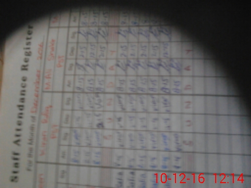 | CNIC | Full Name | Designation | R/C | Absence During Last Calender Month |