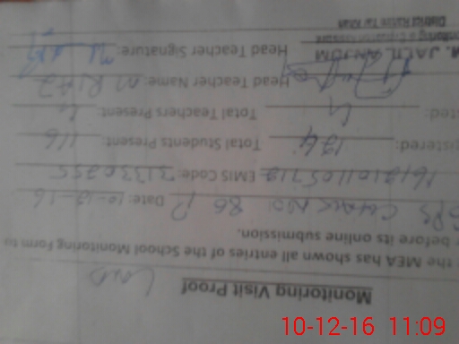 | Certified that this School was Inspected by the Undersigned MEA/DMO Today and the Information Stated Above is as Per Record. | |||||