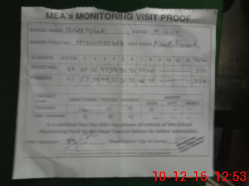 | Monitoring Date: 10-12-2016 | Start Time: 10-12-2016 12:17 PM | End Time: 10-12-2016 12:55 PM | Name of MEA: Kh**** Mu**** (S**** 05**** | |
