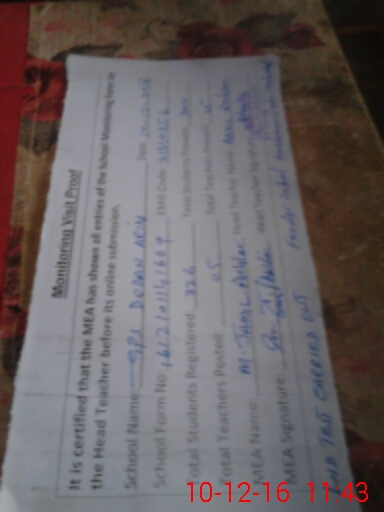 | Certified that this School was Inspected by the Undersigned MEA/DMO Today and the Information Stated Above is as Per Record. | |||||