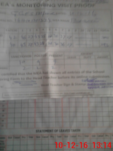 | Attendance Register | Head Teacher | MEA with School | Visit Proof |