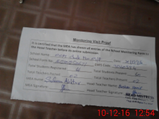 | Certified that this School was Inspected by the Undersigned MEA/DMO Today and the Information Stated Above is as Per Record. | |||||