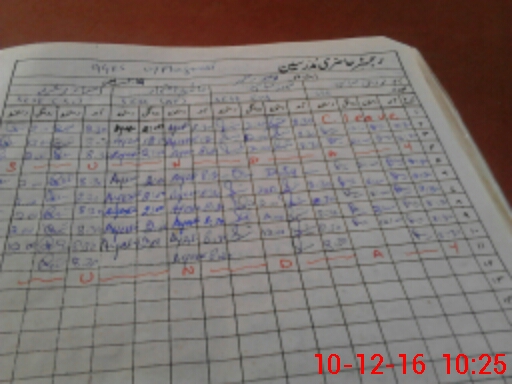| CNIC | Full Name | Designation | R/C | Absence During Last Calender Month |