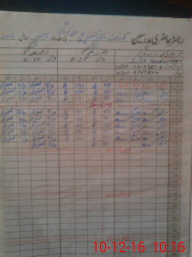 | CNIC | Full Name | Designation | R/C | Absence During Last Calender Month |