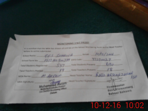 | Certified that this School was Inspected by the Undersigned MEA/DMO Today and the Information Stated Above is as Per Record. | |||||