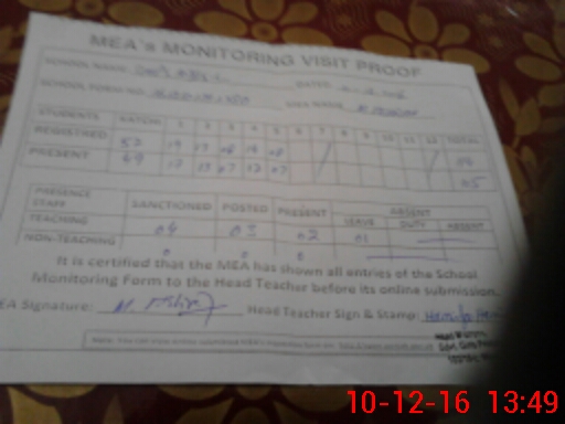 | Certified that this School was Inspected by the Undersigned MEA/DMO Today and the Information Stated Above is as Per Record. | |||||