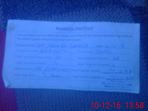 | Attendance Register | Head Teacher | MEA with School | Visit Proof |