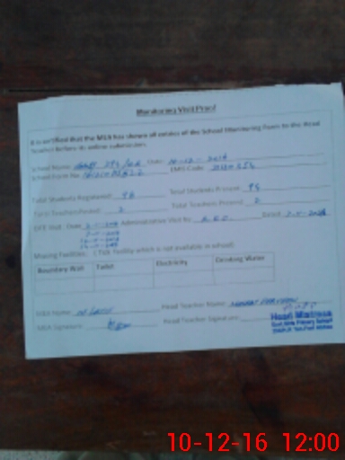 | Certified that this School was Inspected by the Undersigned MEA/DMO Today and the Information Stated Above is as Per Record. | |||||