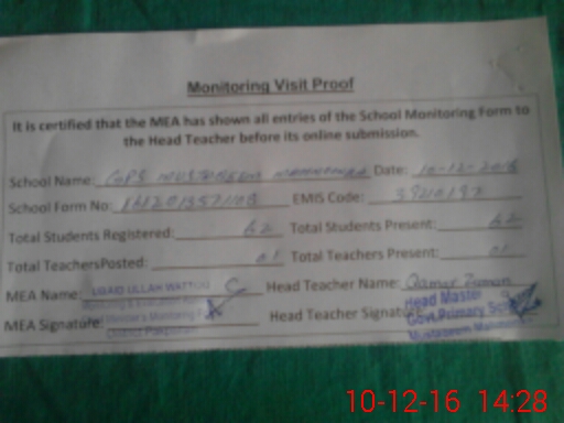 | EMIS Code: 39210197 | Name of School: GPS MUSTAQEEM MAHMONKA P/O PAKPATTAN | |||