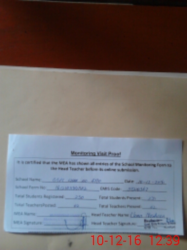 | Attendance Register | Head Teacher | MEA with School | Visit Proof |