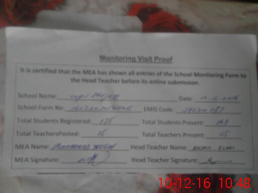 | Certified that this School was Inspected by the Undersigned MEA/DMO Today and the Information Stated Above is as Per Record. | |||||