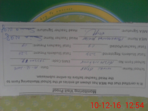 | Certified that this School was Inspected by the Undersigned MEA/DMO Today and the Information Stated Above is as Per Record. | |||||