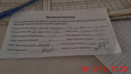 | Attendance Register | Head Teacher | MEA with School | Visit Proof |