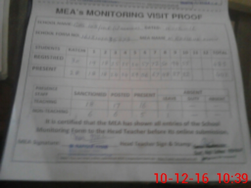 | Certified that this School was Inspected by the Undersigned MEA/DMO Today and the Information Stated Above is as Per Record. | |||||