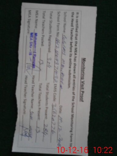 | Certified that this School was Inspected by the Undersigned MEA/DMO Today and the Information Stated Above is as Per Record. | |||||