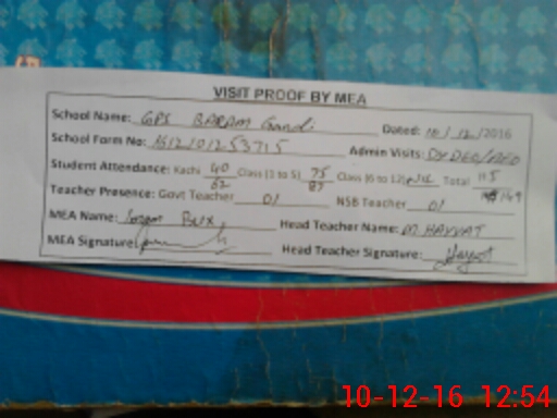 | EMIS Code: 32430201 | Name of School: GPS BARAM GANDI | |||