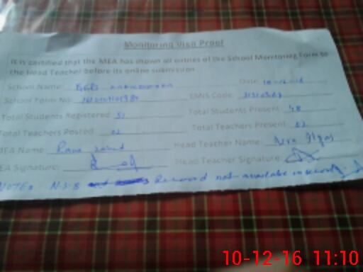 | Certified that this School was Inspected by the Undersigned MEA/DMO Today and the Information Stated Above is as Per Record. | |||||