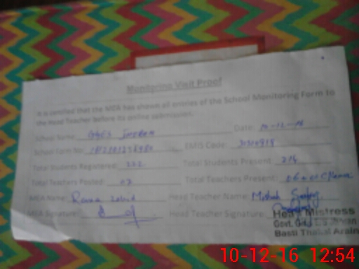 | Certified that this School was Inspected by the Undersigned MEA/DMO Today and the Information Stated Above is as Per Record. | |||||