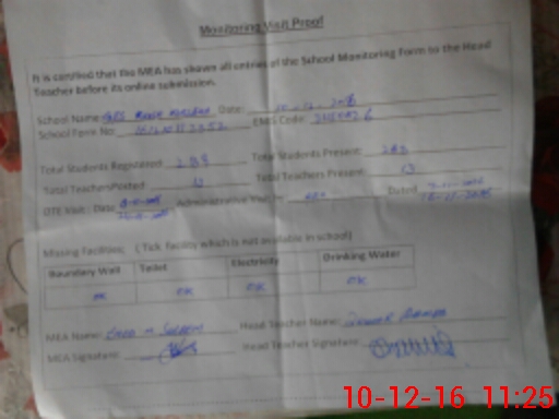 | Certified that this School was Inspected by the Undersigned MEA/DMO Today and the Information Stated Above is as Per Record. | |||||