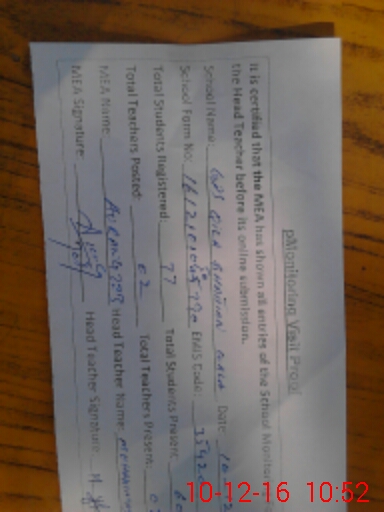 | Certified that this School was Inspected by the Undersigned MEA/DMO Today and the Information Stated Above is as Per Record. | |||||