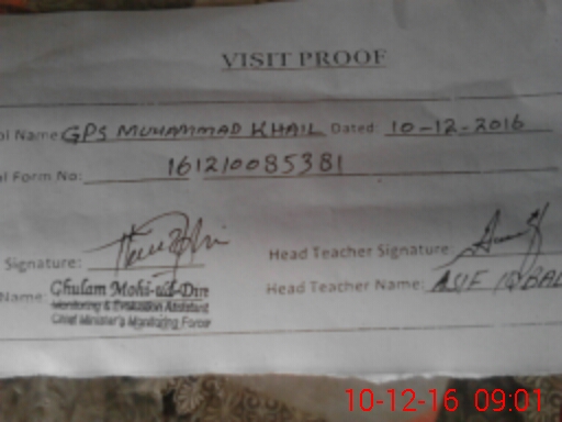 | EMIS Code: 38210448 | Name of School: GPS MUHAMMAD KHAIL | |||