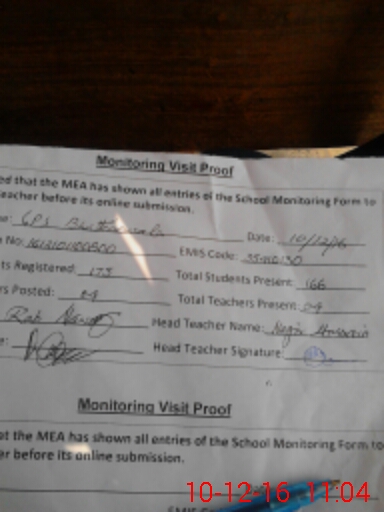 | Attendance Register | Head Teacher | MEA with School | Visit Proof |